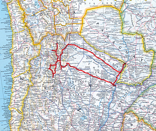 The entire time we were in the chaco of Argentina and each new kilometer looked like the previous kilometer. The one attention getting thing we saw were huge kapok trees. Antonio just felt he had to get out and see if he could find Winnie-the-Pooh or at least his honey jar in an especially fat and decorated kapok.